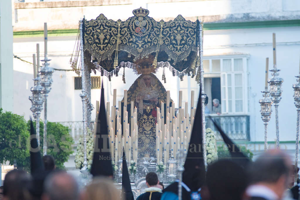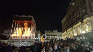 La Hermandad del Perdón abría las puertas de la Parroquia de la Inmaculada Concepción puntualmente a las 15.45 horas. La hermandad del barrio marinero de La Casería, con un barrio que se vuelca totalmente con ella y que por año que se sucede crece de manera agigantada. Un cortejo exquisito, cuidado al máximo. El paso dorado de Misterio del titular cristífero de la hermandad, Nuestro Padre Jesús del Perdón, se abría paso por la calle Magallanes a un ritmo mayor que el del resto de hermandades isleñas haciendo posible con ello que en poco más de tres horas y media recorriera los más de dos kilómetros que separan su Iglesia de la Carrera Oficial.