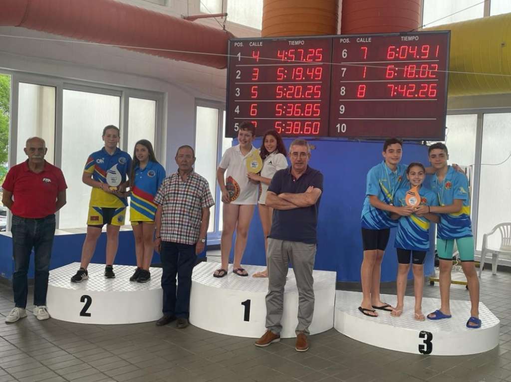 Hay que añadir Oro en 8x50 libre alevín-benjamín mixto, Oro en 4x100 libre alevín mixto, Oro en 8x50 estilos alevín-benjamín mixto y Oro en 4x100 estilos alevín mixto.