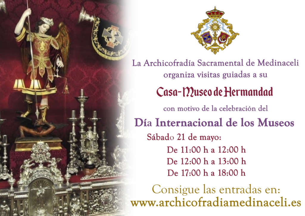 Con motivo de la celebración del Día Internacional de los Museos, la Archicofradía Sacramental de Medinaceli ha organizado para el próximo sábado 21 de mayo visitas guiadas en varios turnos y en grupos reducidos a su Casa-Museo de Hermandad, sita en C/Amargura nº 33.