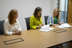 La alcaldesa de San Fernando, Patricia Cavada, y la directora de la Asociación Párkinson Bahía de Cádiz, Dolores Garzón, acompañadas de la concejala de Políticas Sociales, Virginia Barrera, han firmado el convenio regulador que permitirá a esta entidad social recibir otros 90.000 euros del presupuesto del Ayuntamiento para seguir respaldando este proyecto.