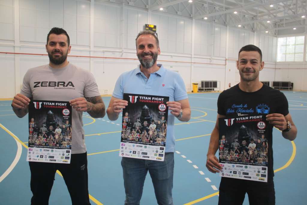 El concejal de Actividades Deportivas del Ayuntamiento de San Fernando, Francis Posada; el director de la Escuela de Artes Marciales Team Romero, Joaquín Romero, y el director de Titan Ludus Academy, Miguel Ángel García, han presentado esta mañana en el Pabellón Enrique Márquez Muñoz el evento de artes marciales Titan Fight Tournament, que tendrá lugar en dichas instalaciones el próximo sábado 11 de junio. Se trata de una iniciativa organizada la Escuela de Artes Marciales Team Romero y Titan Ludus Academy en colaboración con el Ayuntamiento de San Fernando.