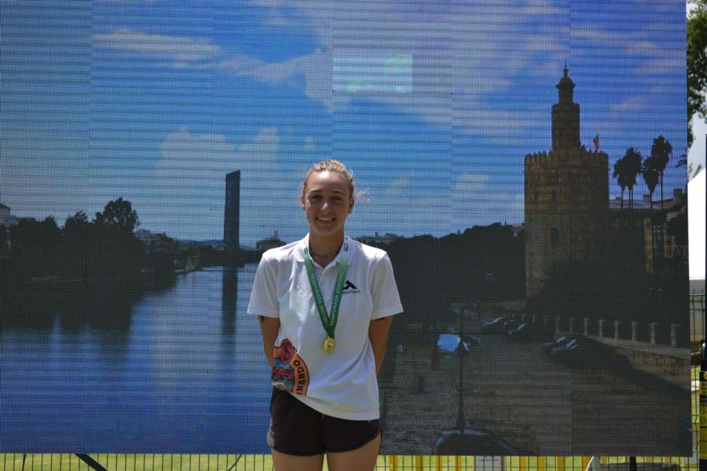 También estaba muy satisfecha Ana Ruiz, que consiguió la Medalla de Oro de la categoría Junior 2 con un tiempo de 1 hora 51 minutos y 25.50 segundos. Ana finalizó en la séptima posición absoluta, magnífico resultado ya que es su primera participación en un campeonato de Aguas Abiertas.