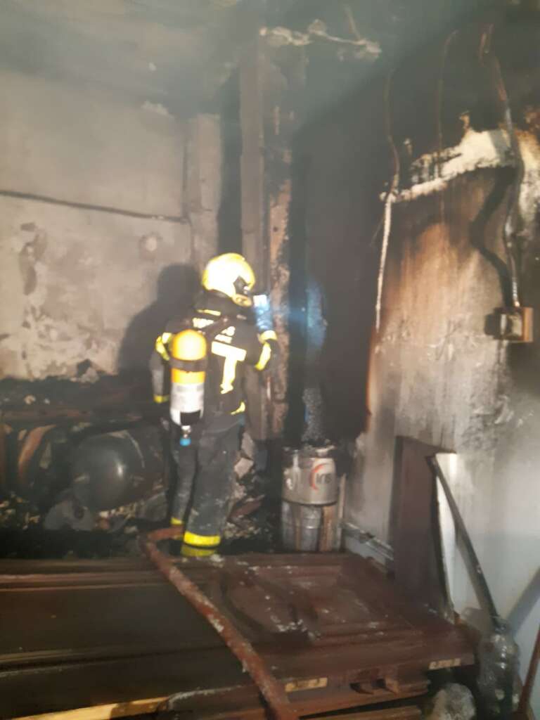 Debido a la gran cantidad de puertas y maderas apiladas hubo que removerlas para completar la extinción y ventilación.