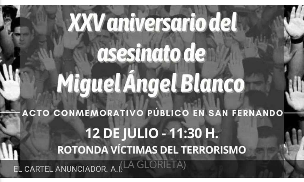 El presidente y portavoz del PP isleño, José Loaiza, ha informado de la celebración el próximo martes 12 de julio, de un acto conmemorativo del XXV aniversario del asesinato de Miguel Ángel Blanco a manos de la banda terrorista ETA. Los populares de San Fernando han querido de esta forma sumarse al llamamiento realizado por la Fundación Miguel Ángel Blanco y que tendrá su epicentro en la localidad vizcaína de Ermua, en un acto presidido por el Rey Felipe VI y al que asistirá el presidente del Gobierno, Pedro Sánchez.