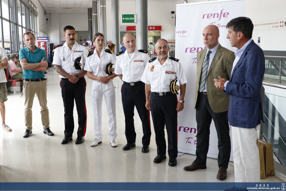 El pasado 27 de junio, la sargento María del Carmen Montes, alumna de la Escuela de Suboficiales de la Armada, y el Cabo de Infantería de Marina Francisco Clavijo, destinado en el Batallón de Cuartel General de la Brigada de Infantería 'Tercio de Armada', salvaban la vida a un viajero en la estación de Cercanías de El Puerto de Santa María (Cádiz). La rápida intervención de ambos, practicando la maniobra de reanimación cardio-pulmonar y haciendo un correcto uso del desfibrilador de la estación, fue determinante para salvar la vida de este ciudadano.