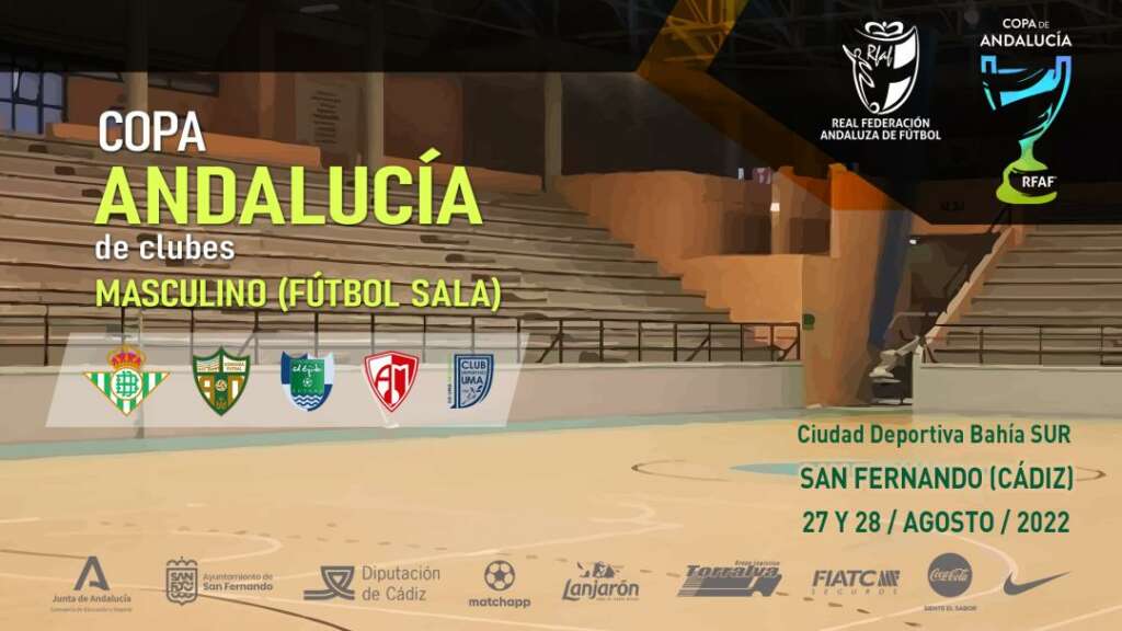 En el segundo de los campeonatos, que se celebrará el 27 y 28 de agosto, 4 equipos lucharán por proclamarse campeón de Andalucía de fútbol sala. De esos 4 conjuntos, 3 ya están confirmados, todos ellos de 1ª División RFEF: el Córdoba Patrimonio, el Real Betis Futsal y el Besoccer UMA Antequera, el equipo malagueño llega como recién ascendido y también como vigente campeón de la Copa del Rey a nivel nacional. El 4º semifinalista saldrá de una eliminatoria previa que se jugará entre el Inagroup El Ejido FS de 2ª División y el Oleoinnova Mengíbar FS.