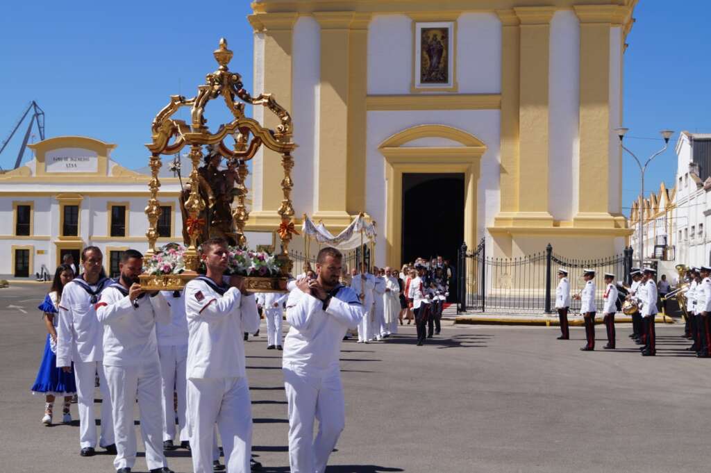 Así, la Base Naval de La Carraca ha vivido una jornada de extraordinaria tradición e historia, vistiéndose de engalanado general para la ocasión. El acto comenzó a las once y media y finalizó alrededor de la una del mediodía con el tradicional desfile militar que cierra cualquier acto castrense. Dentro de este característico acto tuvo lugar la misa votiva, ofrendada por el Arzobispo Castrense de España Excmo. Sr. D. Juan Antonio Aznárez Cobo, la procesión hasta los muelles para el acto de bendición y la vuelta en procesión de nuevo a la iglesia. A continuación, se entonó la salve marinera y se cerró el acto con el desfile final de la Fuerza.