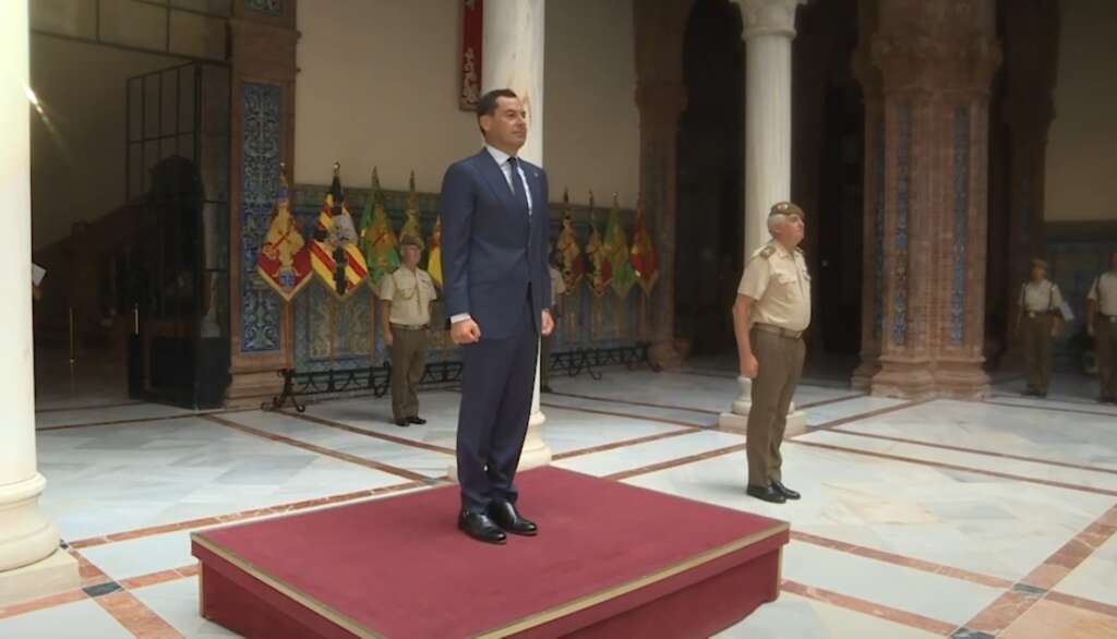 El presidente de la Junta de Andalucía, Juanma Moreno, ha visitado las instalaciones del Cuartel General de la Fuerza Terrestre del Ejército de Tierra situado en Sevilla, donde ha podido conocer de primera mano las funciones, organización y capacidades de este mando operativo de las Fuerzas Armadas.