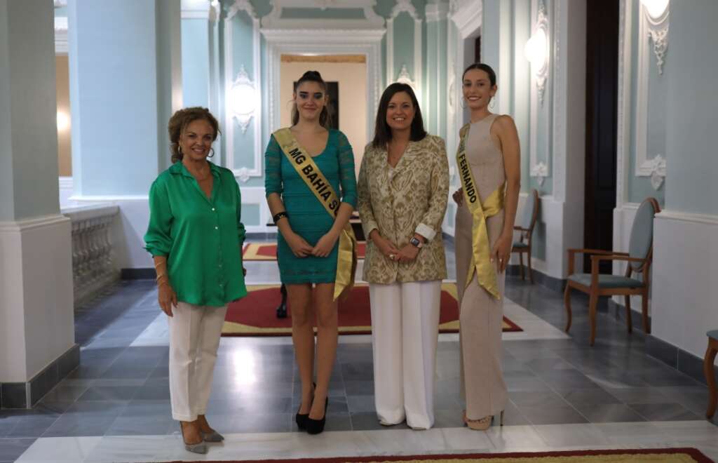 La alcaldesa de San Fernando, Patricia Cavada, y la concejala de Fiestas y Tradiciones, Mar Suárez, han recibido en el Ayuntamiento a las isleñas Julia Núñez y Miriam Ruiz, candidatas a Miss Grand Cádiz 2022, que celebrará su certamen final el próximo sábado día 23 de septiembre.