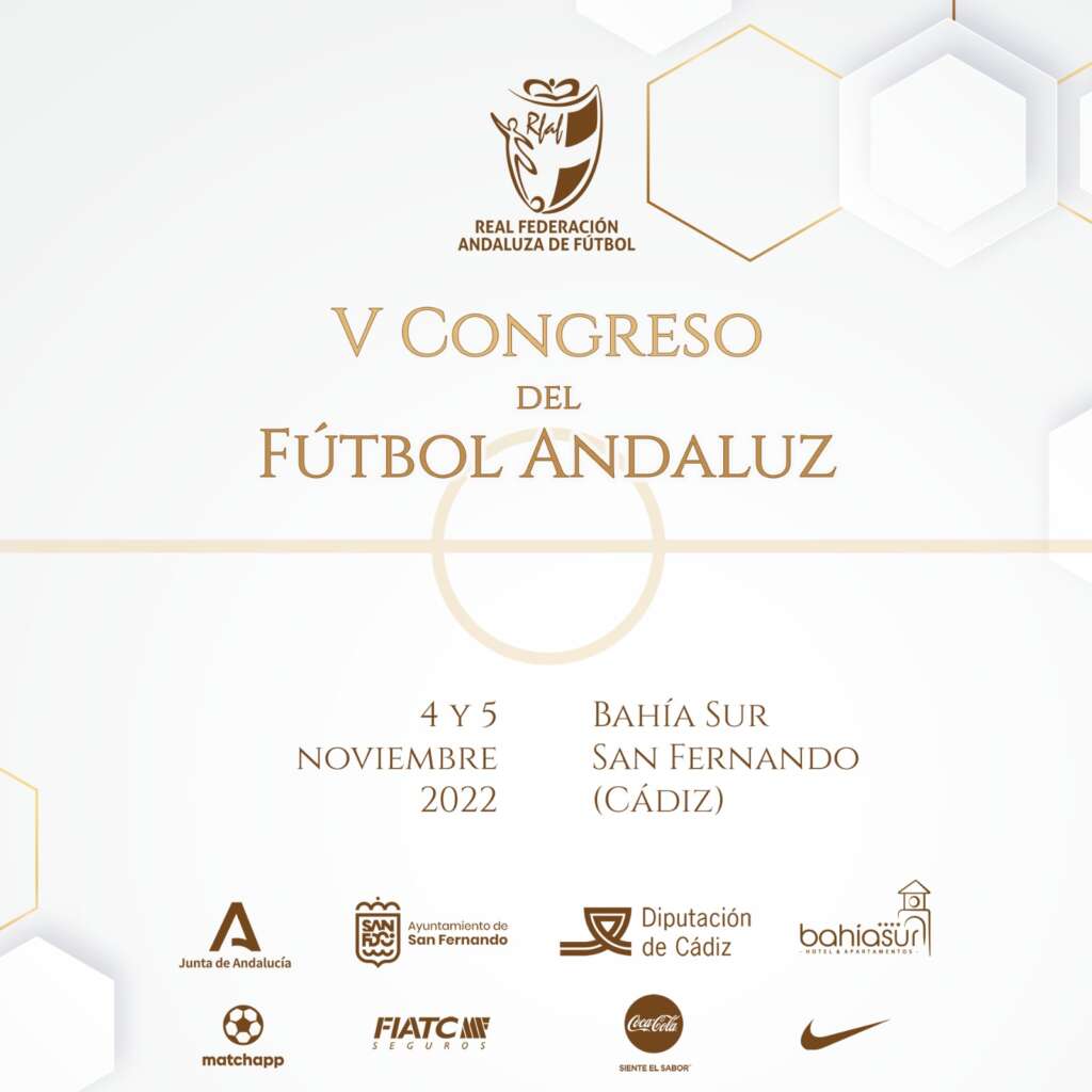 La Real Federación Andaluza de Fútbol organiza los próximos 4 y 5 de noviembre el V Congreso del Fútbol Andaluz, cónclave máximo de debate que nace con el objetivo de marcar la hoja de ruta del fútbol, fútbol sala y fútbol playa en Andalucía de esta nueva época para las próximas temporadas.