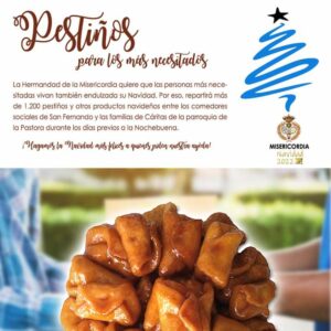 Como ya viene haciendo la hermandad isleña desde hace tres años, en una iniciativa que pusieron en marcha llevando pestiños y dulces a todo el que lo necesita. "Pensamos en las personas que menos tienen y también puedan degustar los productos típicos de estas fechas de la Navidad", declaran desde la hermandad.