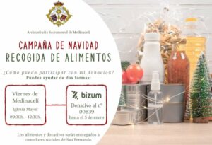 Para esta Navidad, como es habitual, la Archicofradía Sacramental de Medinaceli vuelve a organizar una campaña de recogida de alimentos a beneficio de los comedores sociales de San Fernando.
