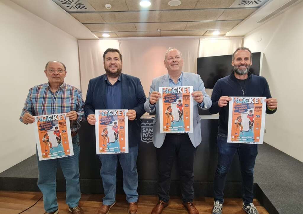 Los concejales de Deporte, Francis Posada y Antonio Rojas, junto al diputado provincial de Deporte, Jaime Armario, y el Presidente del Club de Hockey San Fernando, Jesús Hidalgo, han presentado el Campeonato de Andalucía Cadete Masculino y Femenino de Hockey Sala que se celebrará del 25 al 27 de noviembre en los pabellones del Parque Almirante Laulhé y de Bahía Sur.