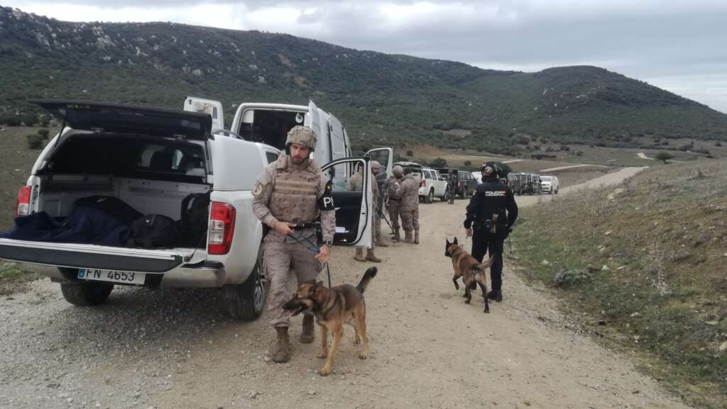 En las instalaciones de combate en la población de la Base Naval de Rota, los equipos de detección de explosivos realizaron búsqueda bajo ambiente de combate. En la Sierra del Retín los perros se adiestraron en ambiente de combate y en la inspección de itinerarios en la búsqueda de artefactos improvisados y de estupefacientes en campo abierto.