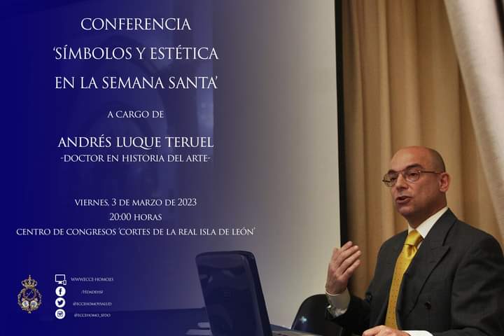 La Hermandad del Ecce Homo tiene previsto realizar la conferencia con el título 'Símbolos y estética en la Semana Santa', que será pronunciada por el doctor en Historia del Arte, d. Andrés Luque Teruel.