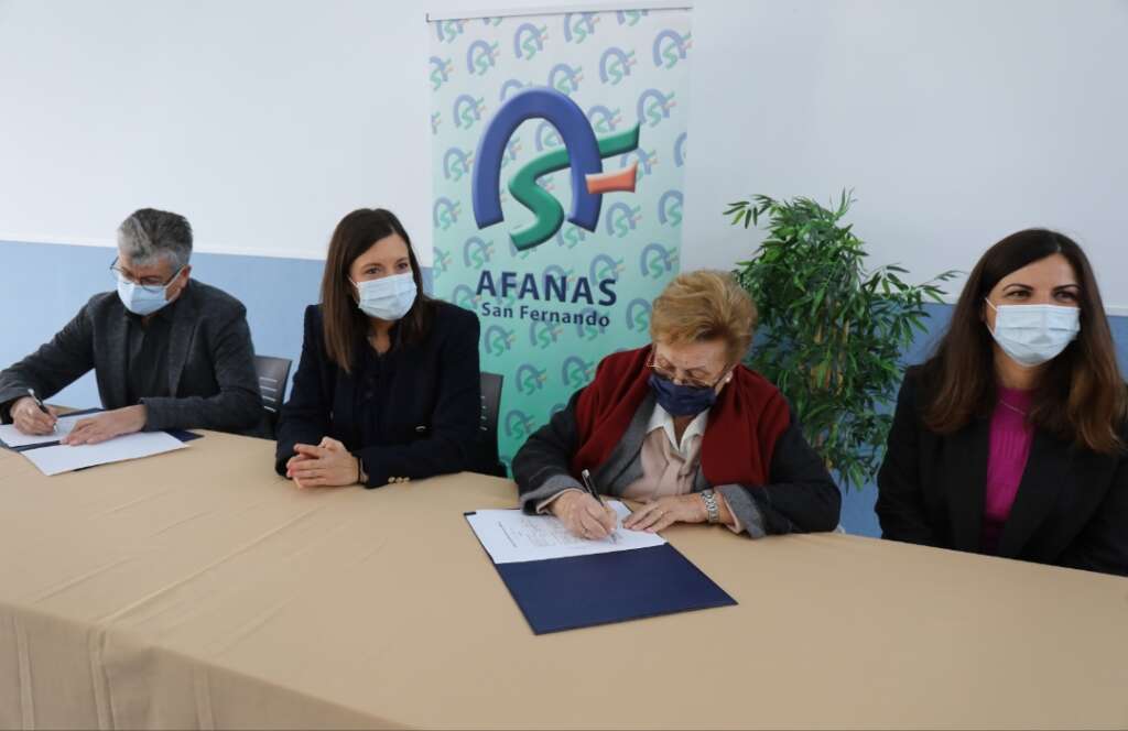 La firma ha sido rubricada por el gerente de Esisa, Miguel Ángel Casal, y la presidenta de Afanas San Fernando, Pilar Ruiz. También ha estado presente la gerente de la entidad, Rosa Sánchez, y la concejala de Políticas Sociales, Virginia Barrera.
