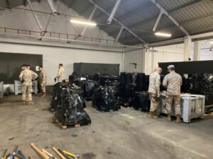 Los trabajos para identificar, localizar, recopilar y preparar para su envió todo el material requerido se realizaron en tiempo récord y en su práctica totalidad en periodo nocturno, exigiendo movilizar al personal responsable del cargo de todas las compañías de la Brigada, a la Unidad de Aprovisionamiento del Grupo de Apoyo de Servicios de Combate, a la Unidad de Apoyo Terminal (UAT) de este mismo Grupo, así como al personal de las Secciones de Logística de todos los Batallones, Grupos y Estado Mayor de la Brigada. Al amanecer del jueves día 9, una vez recopilado y paletizado todo el material, se procedió a la carga para su traslado a la base aérea de Torrejón, desde donde será transportado a Turquía para su reparto en las localizaciones que determine la cadena de mando operativa.