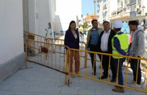 La alcaldesa, Patricia Cavada, y el concejal de Infraestructuras y Mantenimiento Urbano, Javier Navarro, han comprobado el avance de las obras de reforma del acerado de la calle Almirante Faustino Ruiz, ubicada en pleno centro de la ciudad.