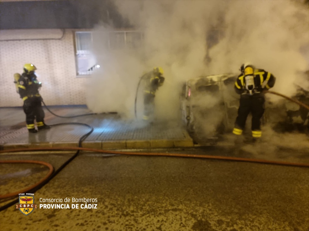 El primero, en la calle Juan Sebastián Elcano se trataba de un incendio de vehículo, en llamas cuando llega Bomberos. Quedó totalmente calcinado y también afectó a una farola ya las persianas de una vivienda cercana. Fueron necesarios 1.000 litros de agua para completar la extinción, y para ellos se utilizaron dos autobombas urbanas, pesada y ligera con una dotación.
