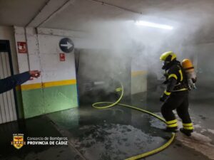 El foco se localiza en una plaza de garaje en el que se encuentra ardiendo una papelera, cuyo fuego afectó a maderas y muebles cercanos y por humos a todo el garaje. Los bomberos procedieron a extinguir el fuego con 200 litros de agua, utilizando dos autobombas urbanas y uno de rescate, empleando una hora de actuación.
