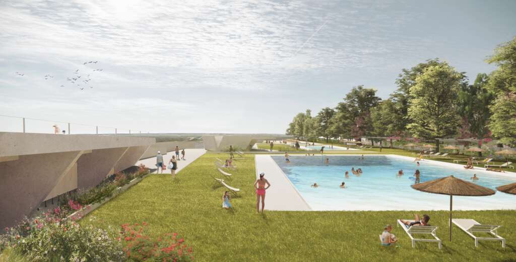 A lo anterior hay que añadir también la zona deportiva y cultural, un área destinada a otras actividades complementarias al baño, como son las actividades deportivas, culturales y de animación infantil. El resto de la superficie del complejo de piscinas se destinará a zonas ajardinadas con césped y caminos de acceso con pavimentos naturales y acabados con colores amables con el medio ambiente, además de zonas de sombra y de pérgolas.