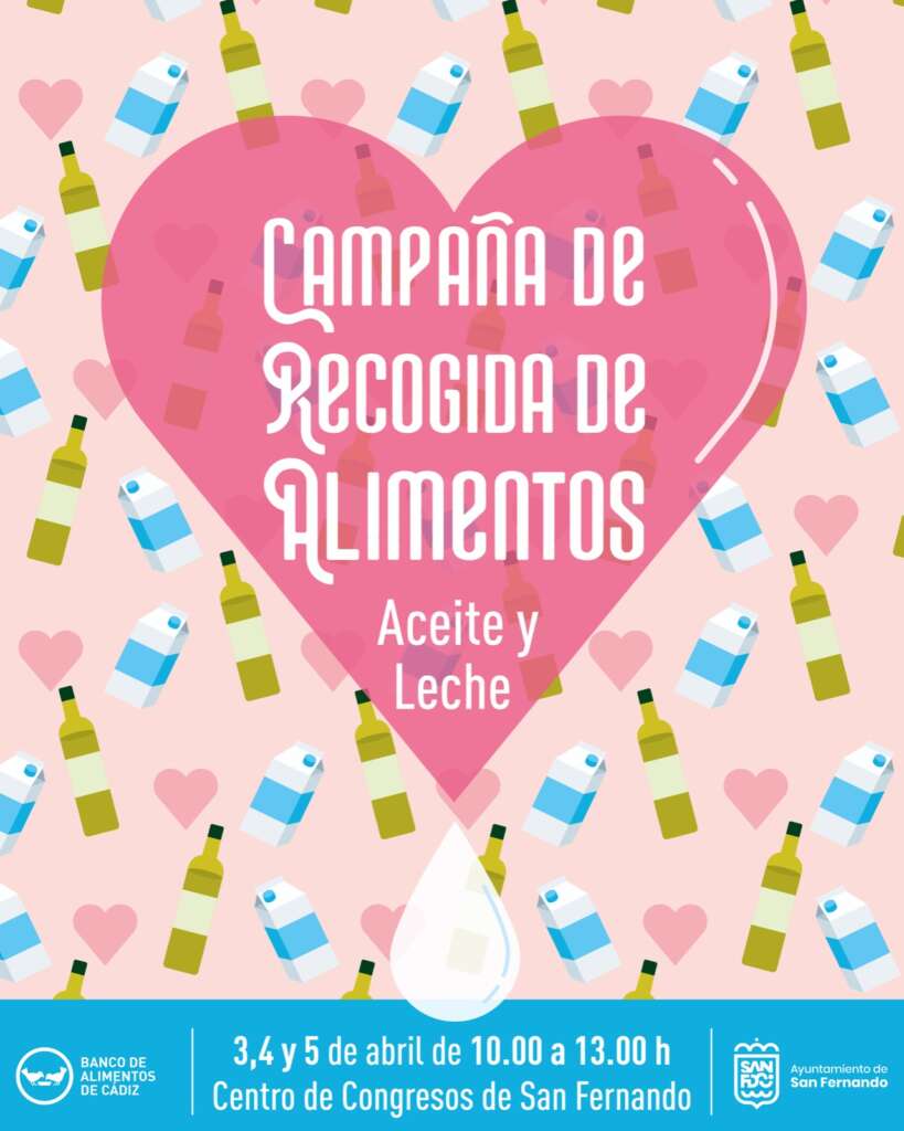 El Ayuntamiento de San Fernando, a través de la Concejalía de Políticas Sociales, y el Banco de Alimentos de Cádiz han puesto en marcha una Campaña de Recogida de Alimentos que se desarrollará los días lunes 3, martes 4 y miércoles 5 de abril en la puerta del Centro de Congresos en horario de 10:00 a 13:00 horas.
