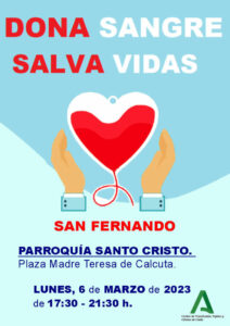 Una vez más desde CTTC de Cádiz piden a la población isleña que done sangre y plasma, por lo que convocan una nueva recolecta para el lunes 6 de marzo en la Parroquia Santo Cristo,-Plaza Madre Teresa de Calcuta-, en horario de tarde (de 17:30 a 21:30 horas).