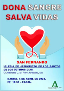 La cita es en la Iglesia de Jesucristo de los Santos de los últimos días, en la calle Almirante J.M. Pery Junquera, s/n, este martes 4 de abril en horario de 17:30 a 21:30 horas.