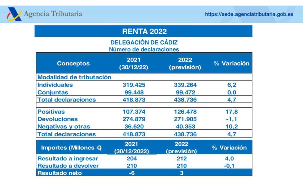 El periodo de declaración comienza hoy para las presentaciones por internet y en 48 horas se abonarán las primeras devoluciones de una campaña con un 62,52 por ciento de declaraciones a devolver en la provincia de Cádiz.