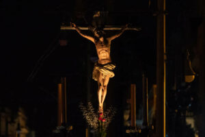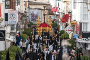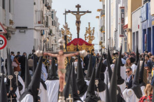 El Barrio de la Casería se engalanaba para el procesionar de su Cofradía, la de Santísimo Cristo del Perdón y Nuestra Señora de La Paz, que con sus andares ya característicos de su Cuerpo de Capataces José de la Cruz, llevaron a su paso de misterio hasta el centro de la ciudad.