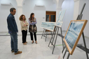 La alcaldesa, Patricia Cavada, y la concejala de Cultura, Mar Suárez, fueron las encargadas de recepcionar las obras junto al pintor, que además es uno de los principales maestros de nuevos talentos de la Bahía gracias a su taller de pintura.