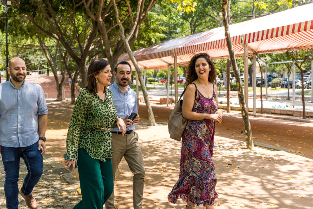 Durante el recorrido, la delegación municipal ha podido comprobar cómo los operarios han finalizado ya con el montaje de la iluminación extraordinaria de los pórticos, los adornos de las calles que conducen al parque y la luminaria de la caseta municipal, trabajos a los que en los próximos días se sumará el de las portadas, con un cuidado diseño inspirado en el cartel de la artista visual María Laura Benavente ‘Mililitros’. Por otro lado, se han instalado ya en la zona central del parque, concretamente en el área del estanque y la arboleda, las praderas de césped que sustituyen a la arena. Estas han sido pensadas para mejorar y embellecer la imagen del recinto ferial, así como para atenuar las temperaturas y servir de espacios de convivencia. “Permitirán disfrutar de un mayor frescor y poder vivir la feria no sólo por la noche, sino también durante el día, acogiendo a un buen número de público tal y como ya vivimos” el año pasado, ha añadido la alcaldesa.