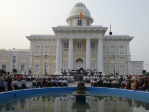 El pasado miércoles 28 de junio tuvo lugar, en la explanada del edificio principal del Real Instituto y Observatorio de la Armada, un concierto ofrecido por la Unidad de Música del Tercio Sur de Infantería de Marina con motivo de la celebración de la IV Jornada Histórica de la Armada. El tema central de esta Jornada fue “La Marina de la Ilustración”, como conmemoración del CCL aniversario del fallecimiento del marino Jorge Juan y Santacilia, científico y fundador del Real Observatorio de Cádiz en el año 1753, que se trasladaría a esta “Isla de León” en 1798.