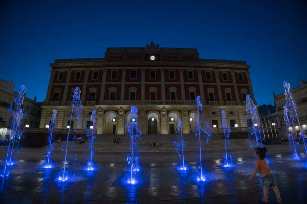 La Plaza del Rey se iluminó de color azul en la noche de este jueves por el Día Europeo de las Víctimas de Crímenes de Odio.