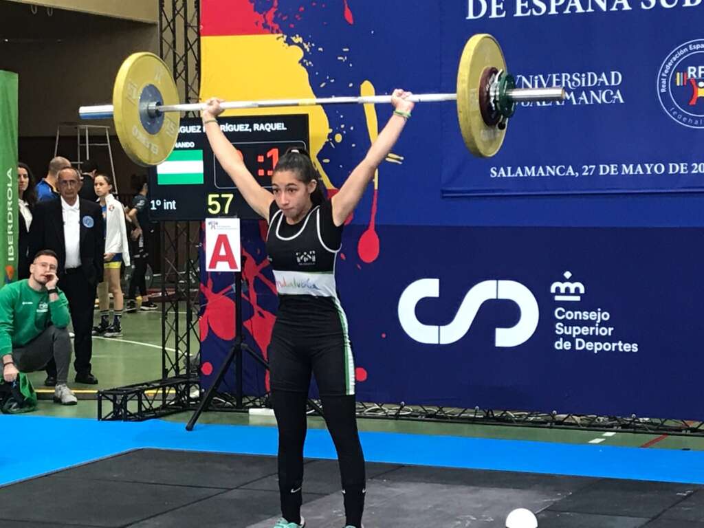 Por parte del CHSF y de todos los atletas, sería Raquel la encargada de abrir la competición. Esta joven levantadora, con un peso corporal de únicamente 44 kilos, fue capaz de levantar 45 kilos en la modalidad de arrancada, venciendo los nervios propios de la entidad de esta cita; en la segunda modalidad, la de dos tiempos, Raquel consiguió levantar 59 kilos, terminando con un total olímpico de 104 kilos y 5 levantamientos válidos, lo que supuso una mejora en sus marcas personales y un meritorio 7º puesto. Nuestra levantadora, que este año ha competido a nivel europeo, puso de esta manera el broche de oro a un año cargado de buenos resultados y en el que ha recogido el fruto de un duro entrenamiento.