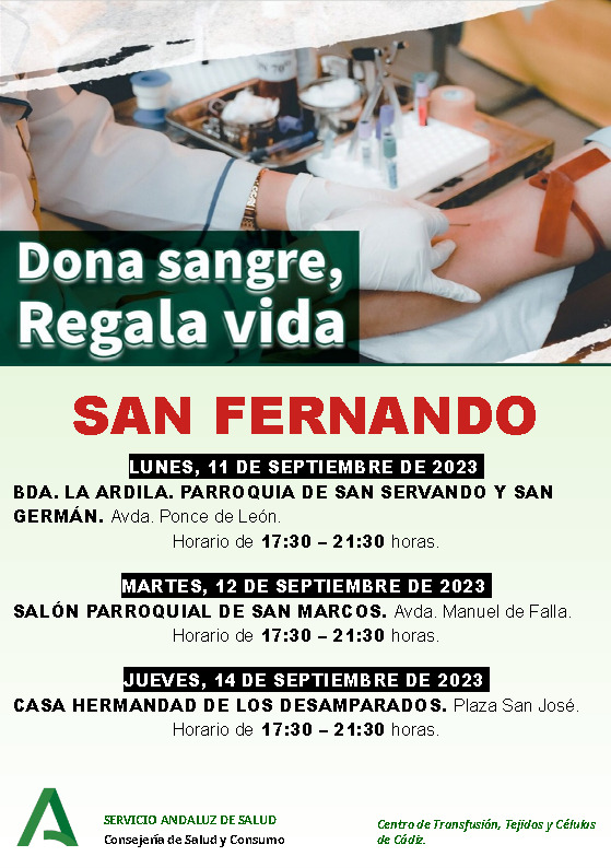 Una vez más desde CTTC de Cádiz piden a la población isleña que done sangre y plasma, por lo que convocan una nueva recolecta para este mes de noviembre en horario de tarde (de 17:30 a 21:30 horas).