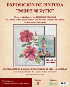 El Castillo de San Romualdo acogerá desde el domingo 3 al 15 de diciembre la exposición de pintura 'Desde mi patio', 38 obras pictóricas realizadas por las personas usuarias del Centro de Día Al Ándalus, gracias al taller creado y dirigido por Franciscos Javier de las Cuevas Ramírez.