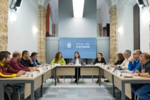 La gala inaugural, con el tradicional chupinazo de la Agrupación Los Pollitos, dará el pistoletazo de salida el sábado 10 de febrero a nueve días en los que la calle, las peñas y distintos establecimientos del municipio isleño tendrán un protagonismo especial. La Gran Plaza del Carnaval será el punto de encuentro tanto el primer fin de semana como a partir del jueves 15 de febrero. Lunes, martes y miércoles la actividad se concentrará en las propuestas de las peñas y el ya consolidado Concurso de Romanceros, que volverá a desarrollarse en el Centro de Congresos y Exposiciones Cortes de la Real Isla de León. La gran cabalgata, por la que también se ha hecho una apuesta de mejora de la calidad, cerrará la cita isleña. “El objetivo general, en definitiva, pasa por consolidar y mejorar nuestro Carnaval, apostando por un ambiente familiar y seguro y por ser ese lugar donde se sabe que se puede venir a escuchar a las mejores agrupaciones del concurso del Teatro Falla”, expuso a modo de conclusión Cavada. Los retos principales, seguir trabajando en “mejorar lo que ya se ha convertido en una seña de identidad como el Concurso de Romanceros” y ponerle un especial mimo a la cantera. La Mesa, con nuevas incorporaciones, seguirá avanzando en estas líneas en las próximas semanas. En esta primera convocatoria estuvieron presentes Mar Suárez, ex delegada de Fiestas en el anterior mandato; José Antonio Betanzos Valencia (coros); Manuel Aleu Jiménez; Paco Clares; María Cortejosa García (FIPE); Jesús Montero Torrejón (chirigotas): Loli Guerra de los Santos (romanceros); Pablo de la Rosa Ortega (cantera) y Dani Oliva Gómez (comparsas).