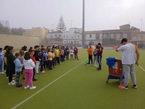 Ayer hicieron los propio visitado el Campo de Hockey Pablo Negre niños y niñas del CEIP La Constitución de San Fernando.