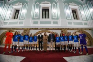 Patricia Cavada mantiene un encuentro con las futbolistas del equipo femenino azulino y su presidente, como muestra del compromiso por la integración y la transformación social gracias al deporte.