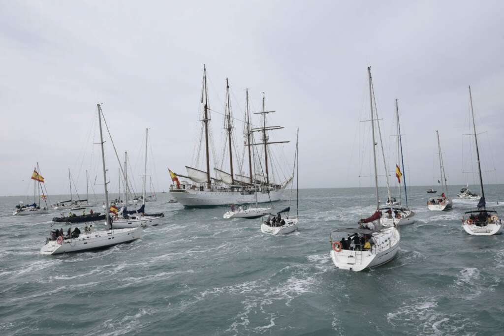 Antes de este acto se ha celebrado una misa en la iglesia Conventual de Santo Domingo y la tradicional procesión de la 'Galeona', patrona de la Marina hasta la declaración oficial de la Virgen del Carmen en 1901, hacía el muelle Ciudad de Cádiz donde como todos los años había una multitud de familiares de los miembros de la dotación junto al público gaditano que desearon contemplar la partida del buque que ya forma parte de la historia y del paisaje de Cádiz.