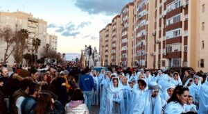 Recorrido: Trayecto modificado para este 2024, ya que su punto final no será el Castillo de San Romualdo. La comitiva atravesó toda la Avenida de la Constitución, para encarar la carretera de Camposoto, enlazar con las calles Luis Milena y Real y culminar en la Plaza del Rey.
