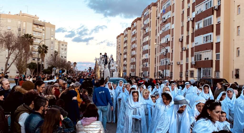 Bellas carrozas comenzaron a repartir ilusión tanto a grandes como pequeños. Encabezando la comitiva; motocicletas, coches de la PolicÃa Local, PolicÃa Nacional y Protección Civil asà como una pick up del Cuerpo de Bomberos. Destacar entre las once carrozas, las tres de Sus Majestades; con siete metros de longitud y 4,5 de altura las cuales se idearon inspiradas en la iconografÃa nórdica navideña y los palacios imperiales con tronos que simulan a regias escalinatas.
