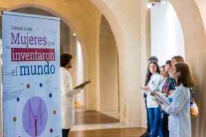 Los IES 'Jorge Juan' y 'La Bahía' visitan la exposición 'Mujeres que inventaron el mundo'
