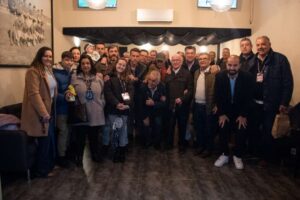 Allí, el presidente Louis Kinziger y el consejero Pedro Ramírez recibieron a Doña María Luisa Rodríguez, viuda del delantero azulino, y a sus hijos, Alejandro, Carlos y Álvaro. Ambos vivieron un momento muy especial al verse rodeados de hasta una treintena de excompañeros de vestuario de Chicha y de otros veteranos del CD San Fernando.