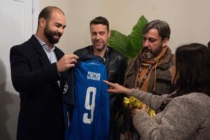 El presidente entregó a la esposa de Chicha, tras unas emotivas palabras de recuerdo a su persona y apoyo a sus allegados, una camiseta personalizada con el dorsal y número de la leyenda y una bota de oro como máximo goleador de la historia de nuestra entidad (172 tantos).