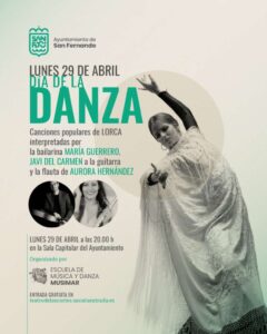 El Ayuntamiento de San Fernando celebrará el próximo 29 de abril el Día Internacional de la Danza con un espectáculo fusión de música y danza española recopilada e instrumentada por Federico García Lorca. Las entradas para asistir al evento, que tendrá lugar en la Sala Capitular con carácter gratuito, pueden descargarse a partir de las 12.00 horas de este miércoles, 24 de abril, en la web habitual https://teatrodelascortes.sacatuentrada.es/es.