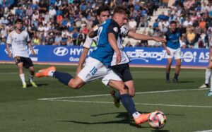 Álvaro Rodríguez batió de cabeza a Egoitz al rematar un servicio desde la izquierda (27’). El San Fernando reaccionó por medio de Naveira (36’) y Aquino (41’) y Egoitz acertó a detener un remate de Nico Paz en el 43’. A punto de llegar al descanso, Carlos Blanco aprovechó un buen envío de Pau Martínez para enviar un potente cabezazo al fondo de la red superando a un Cañizares incapaz de retener el esférico.