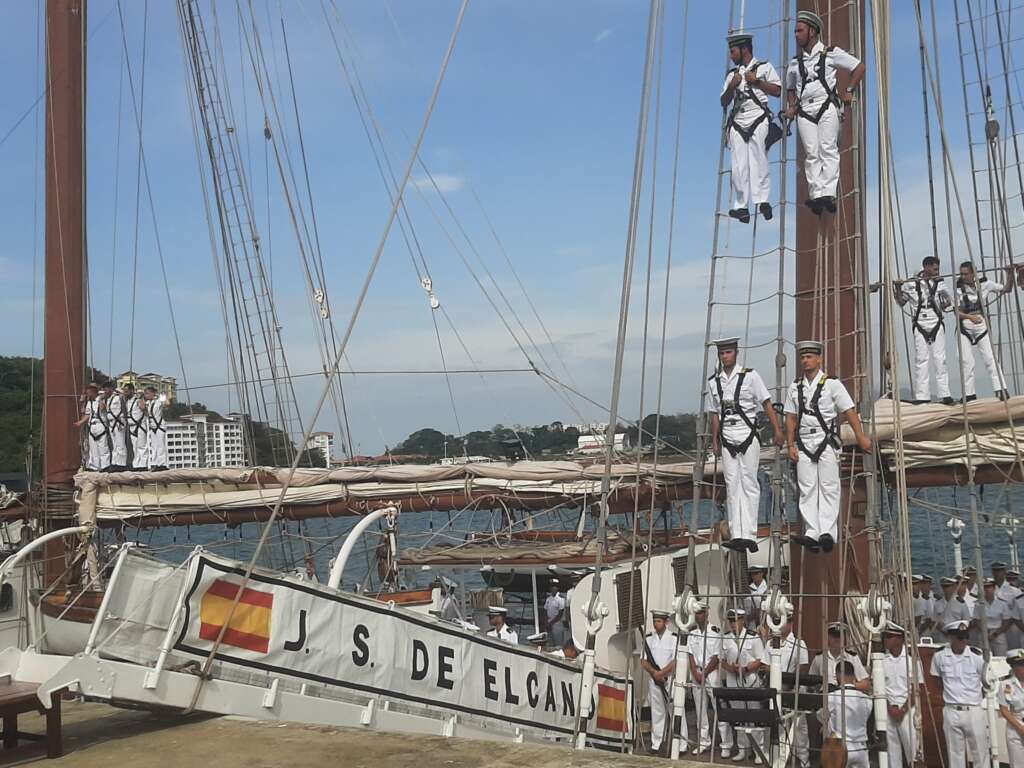 El 'Juan Sebastián de Elcano', un bergantín-goleta de cuatro palos, es uno de los barcos más representativos de la Armada Española y también uno de los más antiguos veleros que aún navegan por el mundo. Su cometido principal es formar a los futuros oficiales de la Armada. En 1928, salió a la mar para llevar a cabo lo que sería su primer crucero de instrucción, que desde entonces realizará casi sin interrupción cada año. En sus casi cien años de vida, ha recorrido más de un millón ochocientas cincuenta mil millas náuticas (1.850.000) en todos los mares y océanos y navegado más de 15.300 singladuras. Ha entrado en 205 puertos de 73 países diferentes, con un total de 1.265 visitas o escalas. En Panamá ha realizado varias escalas, dejando un entrañable recuerdo en la comunidad española y entre los panameños amigos de España.
