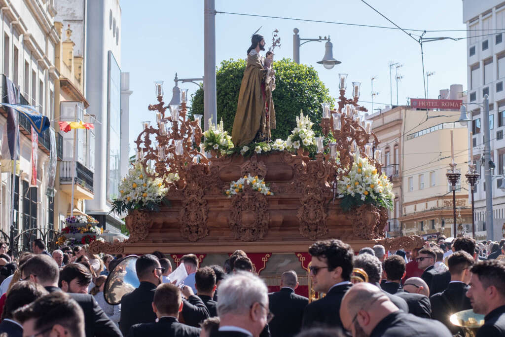 La imagen del Patriarca San José volvía a recorrer este miércoles, 1 de mayo, las calles de la ciudad haciendo vibrar de nuevo a los cofrades de San Fernando, a pesar de que el día comenzaba nublado y con algunas lluvias, éstas no hicieron acto de presencia durante la tarde noche e hicieron que el Patrón de La Isla pudiese hacer todo su itinerario completo.